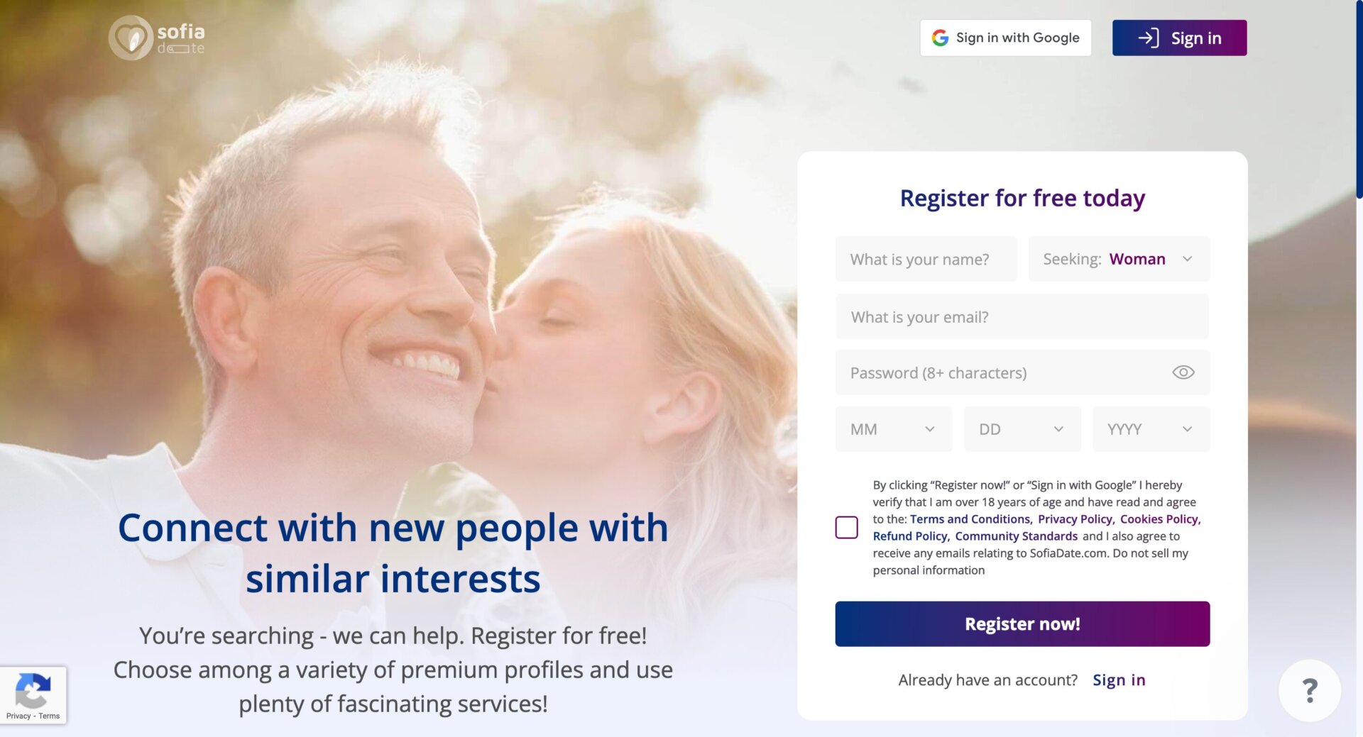 Enrollment here is very easy, and it takes simply a couple of mins to finish it. The first thing I saw on the main page of the website was the SofiaDate login kind and the enrollment kind with just a couple of basic fields, namely: